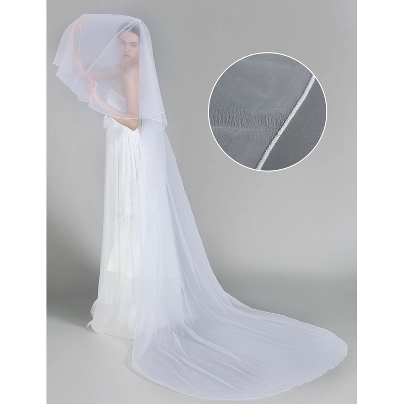BEAUTELICATE Wedding Bridal Veil with Comb 2 Tier Pencil Edge Long Cathedral Length 118" V45 White