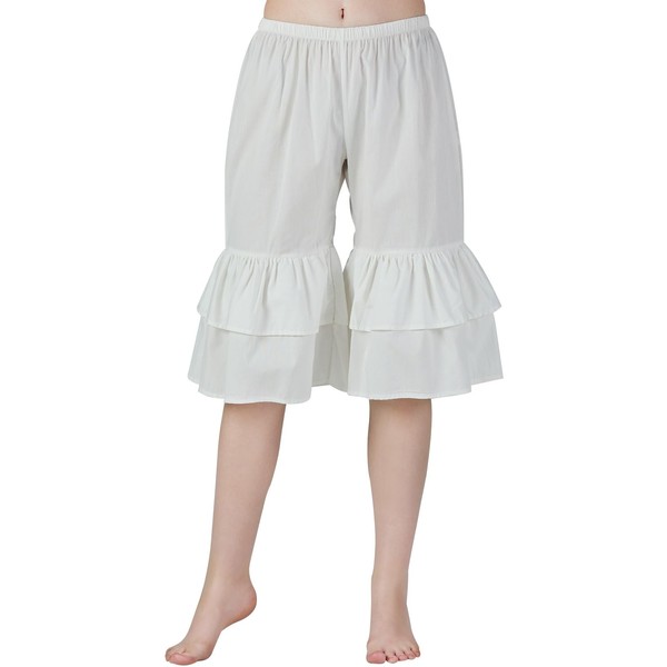 BEAUTELICATE Women Bloomers Ivory Cream 100% Cotton 2 Layer Ruffled Flounced Pants Pettipants