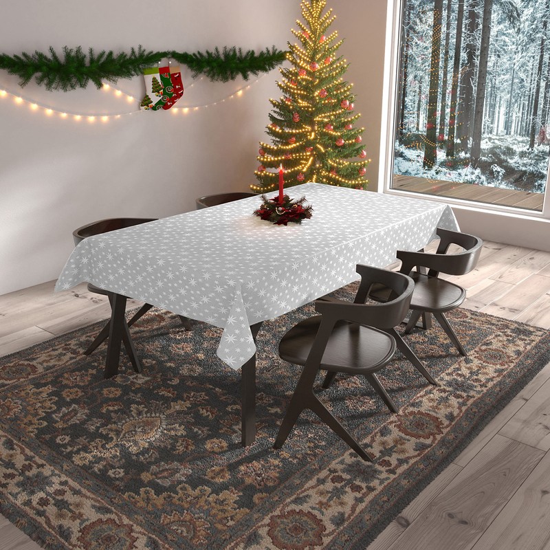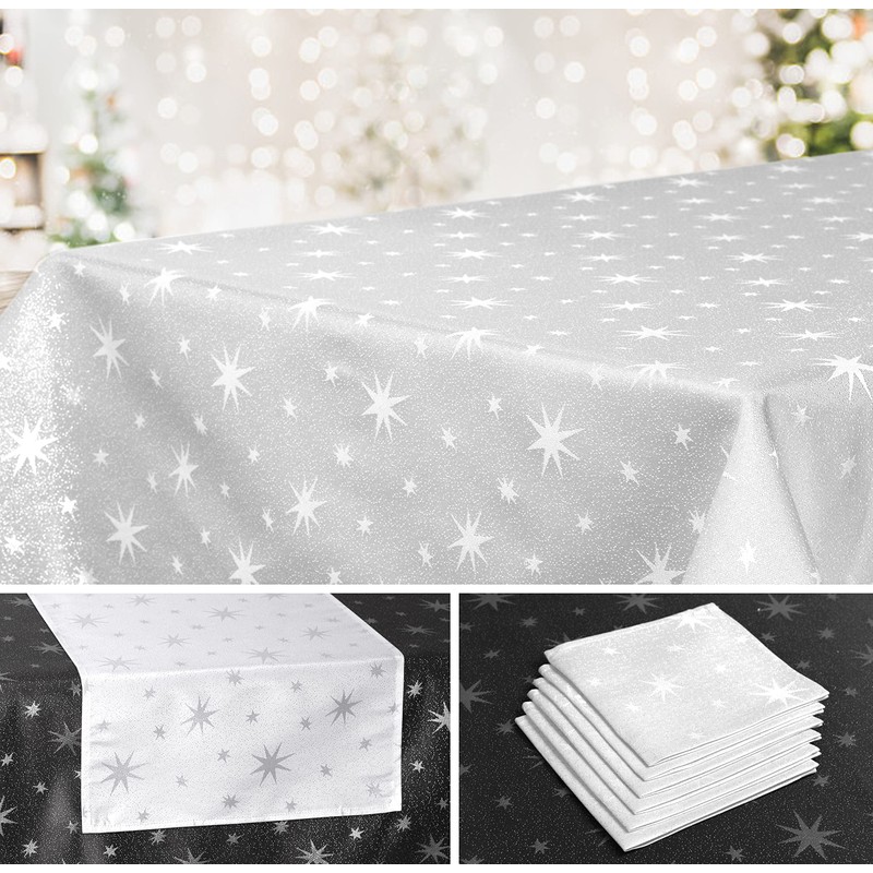 BEAUTEX Lurex Stars Tablecloth, Shiny Silver, Christmas Tablecloth, Choice of Size and Colour (Rectangular 130 x 160 cm, White-Silver)