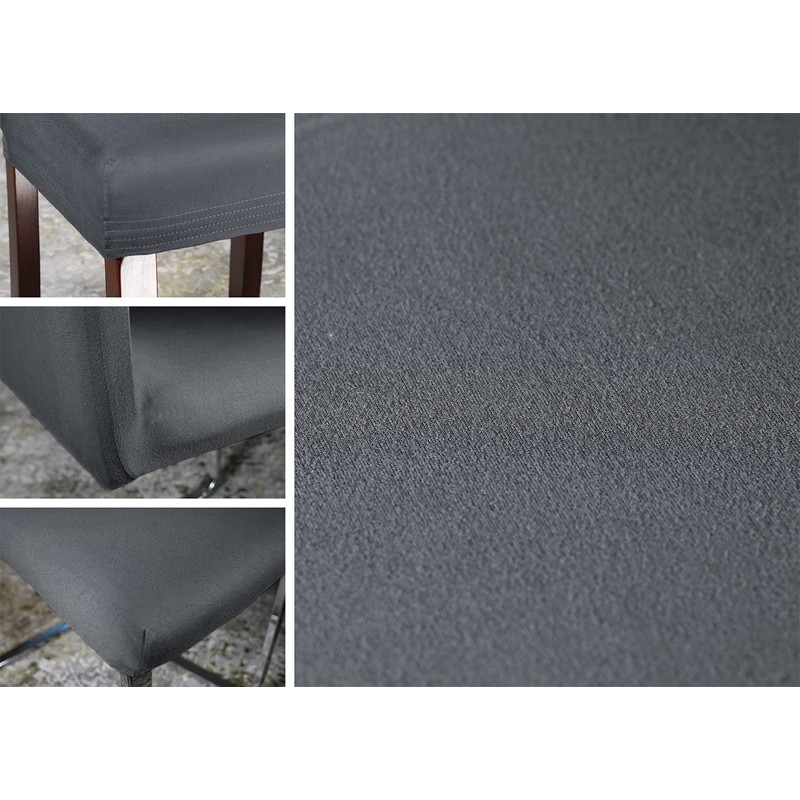 Very easy to clean: machine washable at 30 °C, it can be freshly wound again after drying. Protects the seating furniture and gives it a completely new look. Old chairs look like new again. This universal and wrinkle-free chair cover is characterised by a perfect fit and fits perfectly to any chair. Thanks to the stretch properties (bi-stretch: horizontal and vertical).