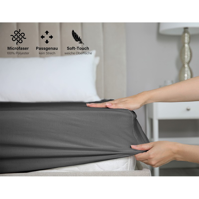 BEAUTEX Microfibre Fitted Sheet, Lightweight and Soft Premium Quality (90 x 200 x 30 cm, Dark Grey)