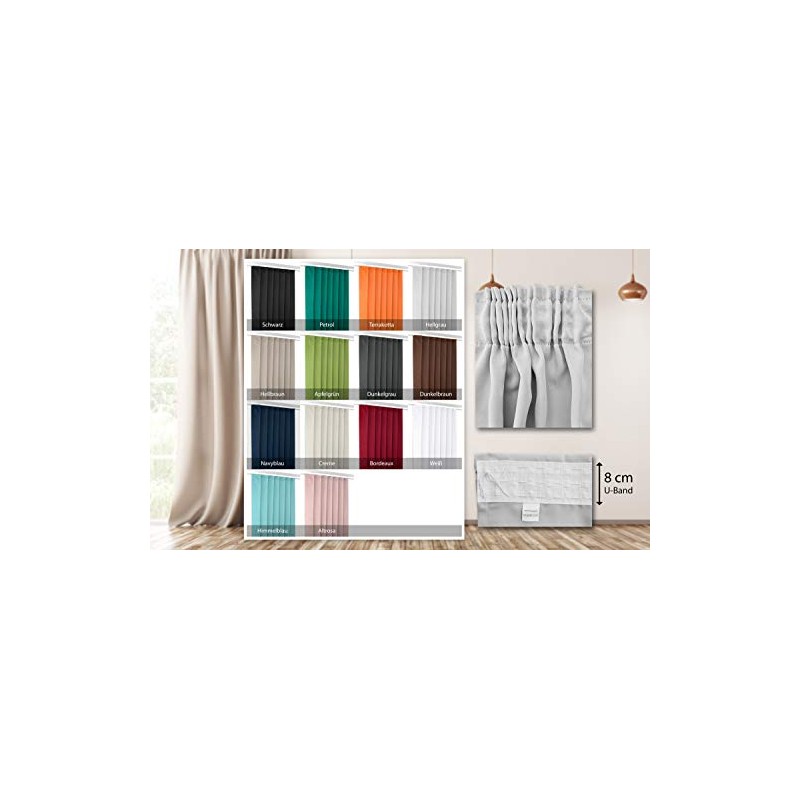 The highly darkening plain-coloured curtain stands out with its attractive design, clean modern lines and convenient features. The curtain is not only great for windows but can also become a stylish interior design accent design in living rooms, bedrooms and hallways. It serves as a decorative piece as well as a practical blackout curtain. The high-quality material can reduce noise penetration in the room by up to 10%. Depending on your needs, you can choose one, two or more curtain panels for your windows, balcony doors or patio doors. You can shorten the curtains individually to room height and design wishes.