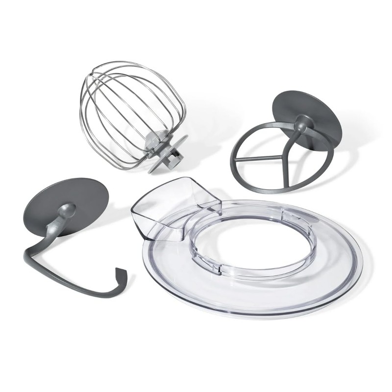 • Comprehensive Attachment Set: Includes coated metal flat beater, dough hook, and stainless steel wire balloon whisk for diverse culinary tasks.
