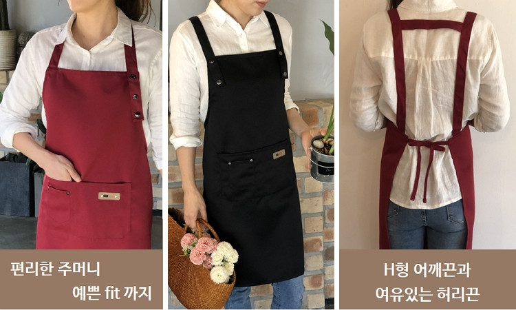 Beautiful apron for cafe barista kitchen workshop waterproof work, B:H type strong coffee / 카페 바리스타 주방 공방 방수 작업용 예쁜 앞치마, B:H형 진한커피