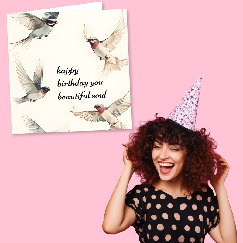 Beautiful Birds Birthday Card - Happy Birthday You Beautiful Soul - Birds In Flight Design - Birthday Card For Women, Men, Friend, Partner, Best Friend