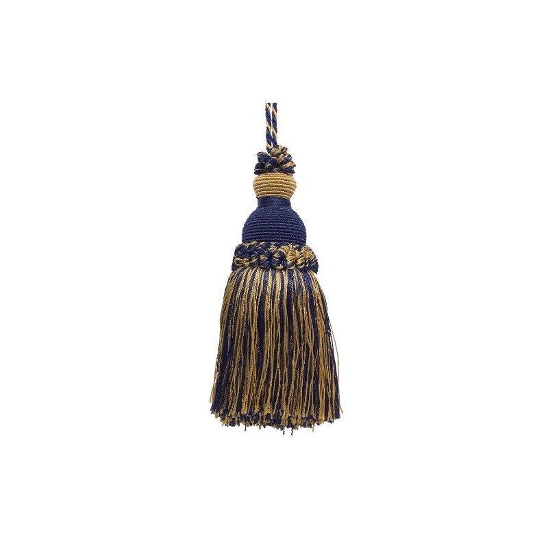 DÉCOPRO Beautiful Hand-Crafted 5" (12.5cm) Key Tassel 3 1/2" (8.5cm) Loop (Style# IKTJ) Nautical Gold Multicolor #1152 (Light Gold Yellow Gold Navy Blue) Individually Sold