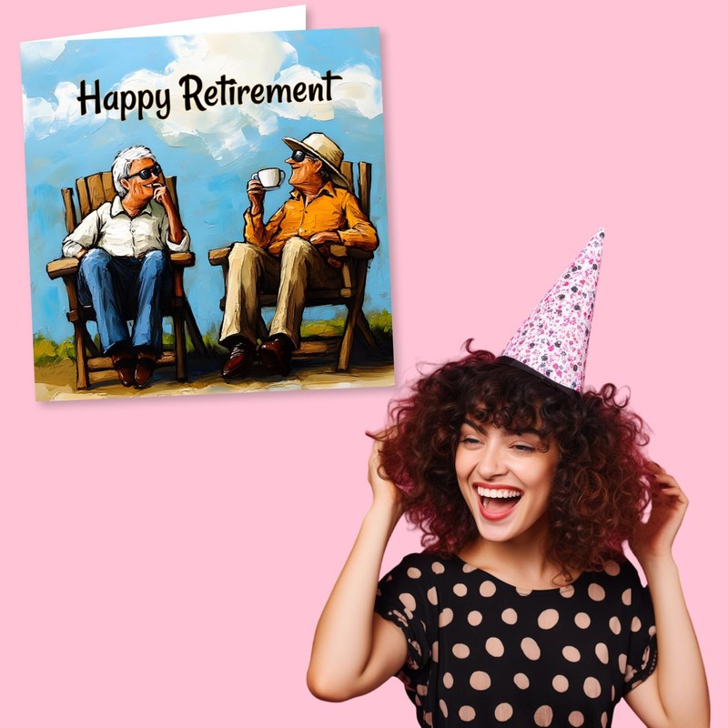 Beautiful Happy Retirement Card for a Colleague or Loved One - Painting, Couple, Relaxing, Drinking Tea - For a Parent, Grandparent, Relative, Friend