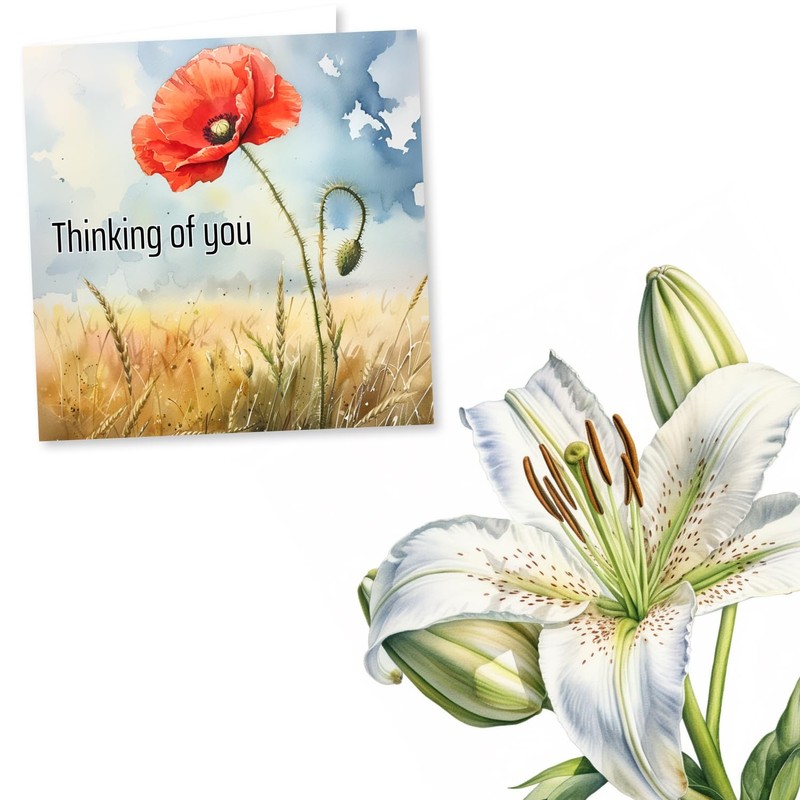 Beautiful Thinking Of You Card - Poppy Design - Sympathy or Condolence Card