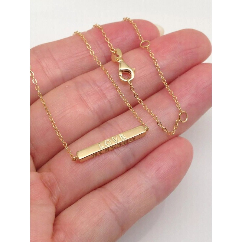 Beautifuljewelrynyc 925 Sterling Silver Blessed Faith Love Believe Bar Necklace 19mm/0.75" Gold