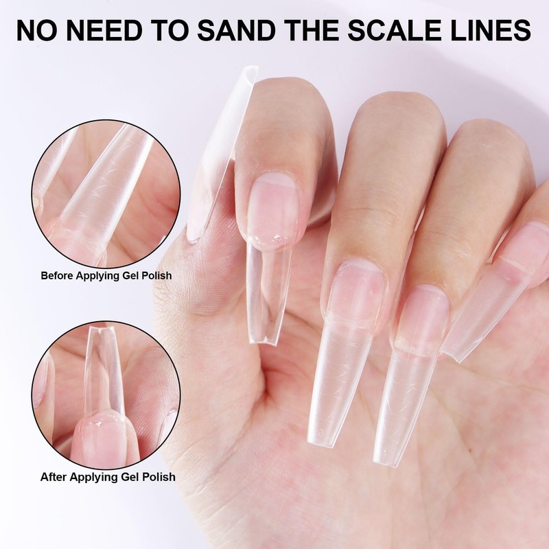 - Full cover nail tips: after applying a layer of nail gel, the guide line disappears immediately. It blends perfectly with the nail bed, does not peel off easily and looks more natural.