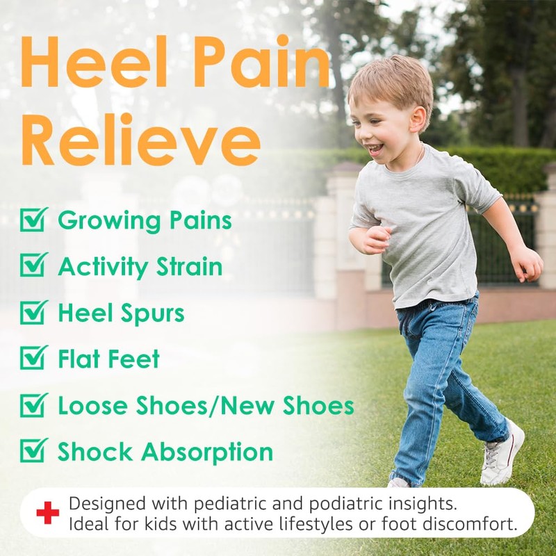 - Effective Heel Pain Relief: Specially designed to alleviate heel discomfort in children, these heel cups help reduce pressure and provide soothing relief from growing pains and activities that strain the heels, ensuring comfort every step of the way