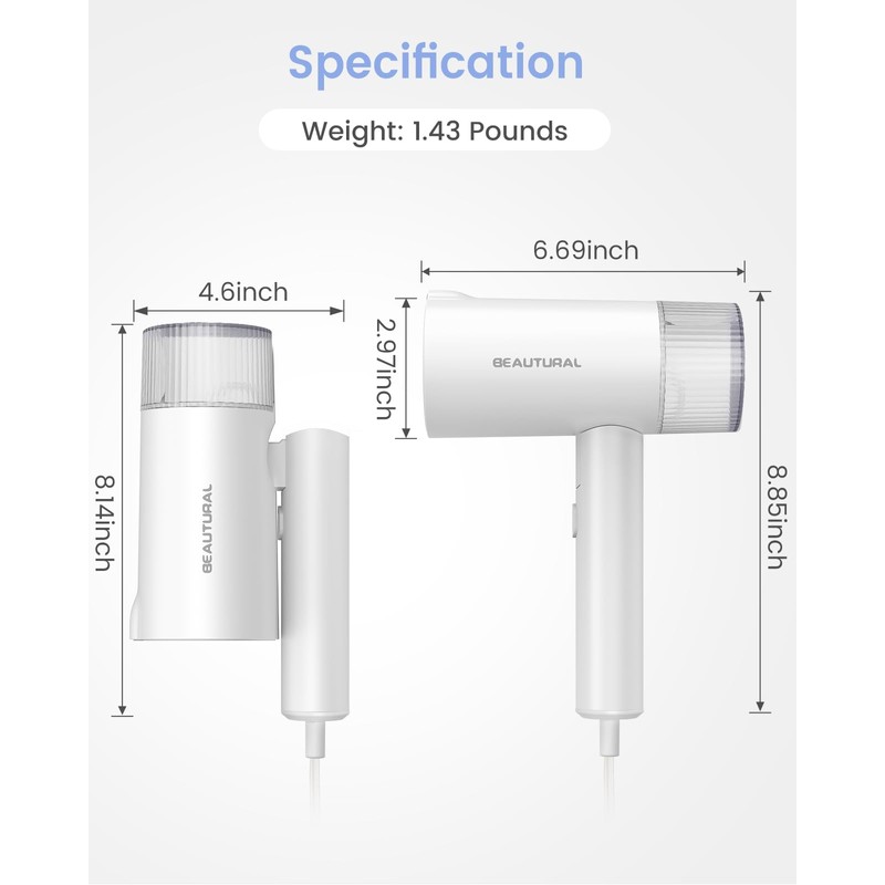 BEAUTURAL Steamer for Clothes, Portable Garment Wrinkle Remover, Fast 30s Heat-up, Foldable and Handheld, 120V Only (Not for 220V Europe)