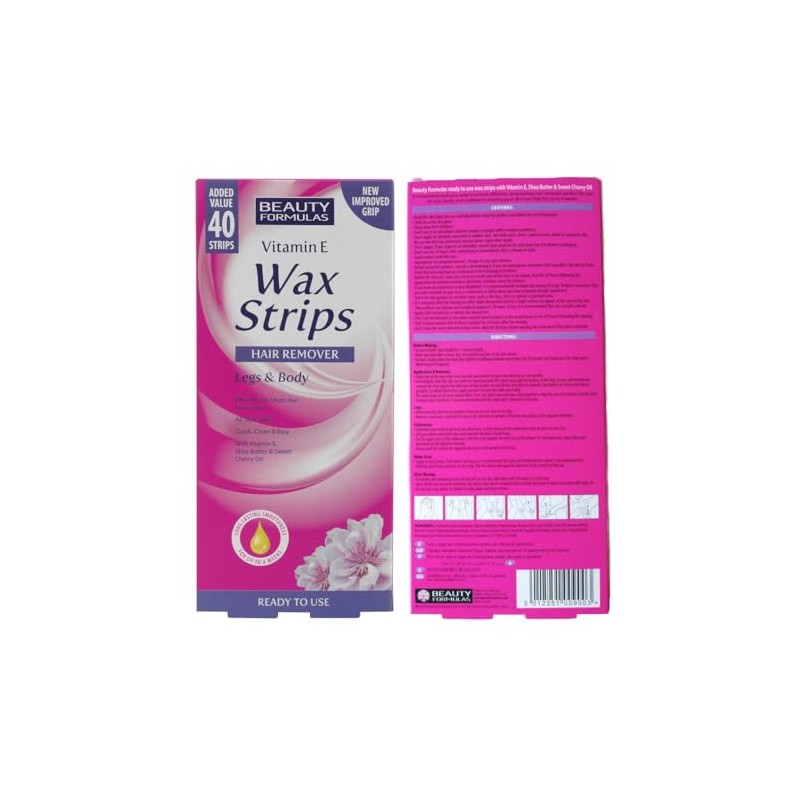 Beauty Formulas wax strips are hair removal strips for the legs and body. Featuring moisturising Vitamin E. Ingredients. Wax box contains wax strips.