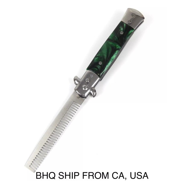 Beauty Headquarters Metal Switchblade Pocket Folding Flick Hair Comb For Beard, Mustache, Hair