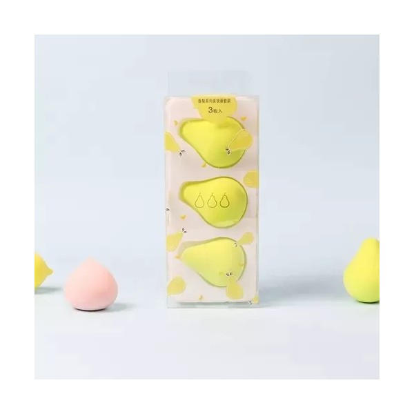 Esponja de microfibra en forma de fruta, esponja de microfibra sin látex,base suave, herramientas de maquillaje, 3 unidades
