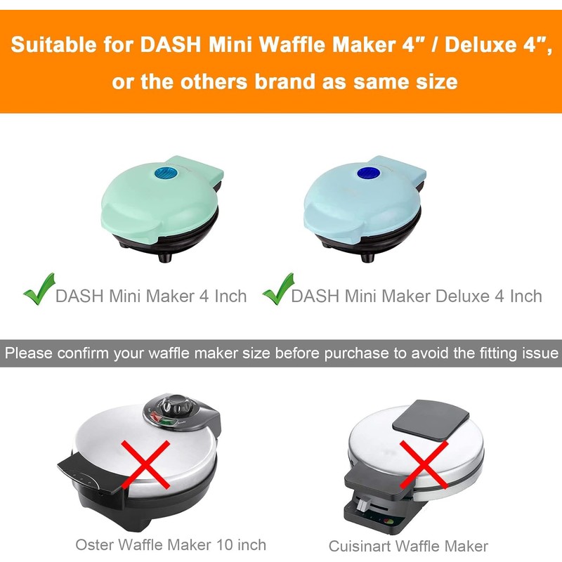- Size: 6.75 x 5.75 x 2.85 IN, suitable for DASH Mini Waffle Maker 4 Inch, or the others brand as same size, as shown in size image; Material: 1680D+PVC Lining, splash proof and durable.
