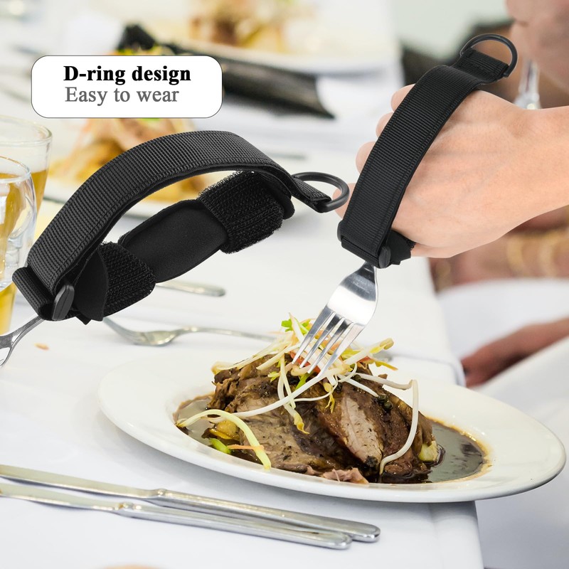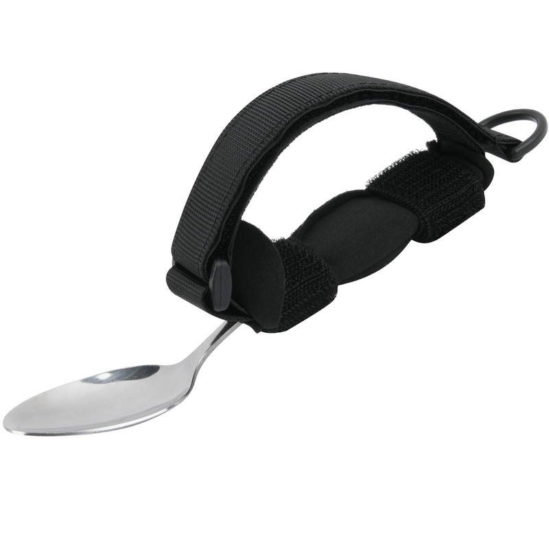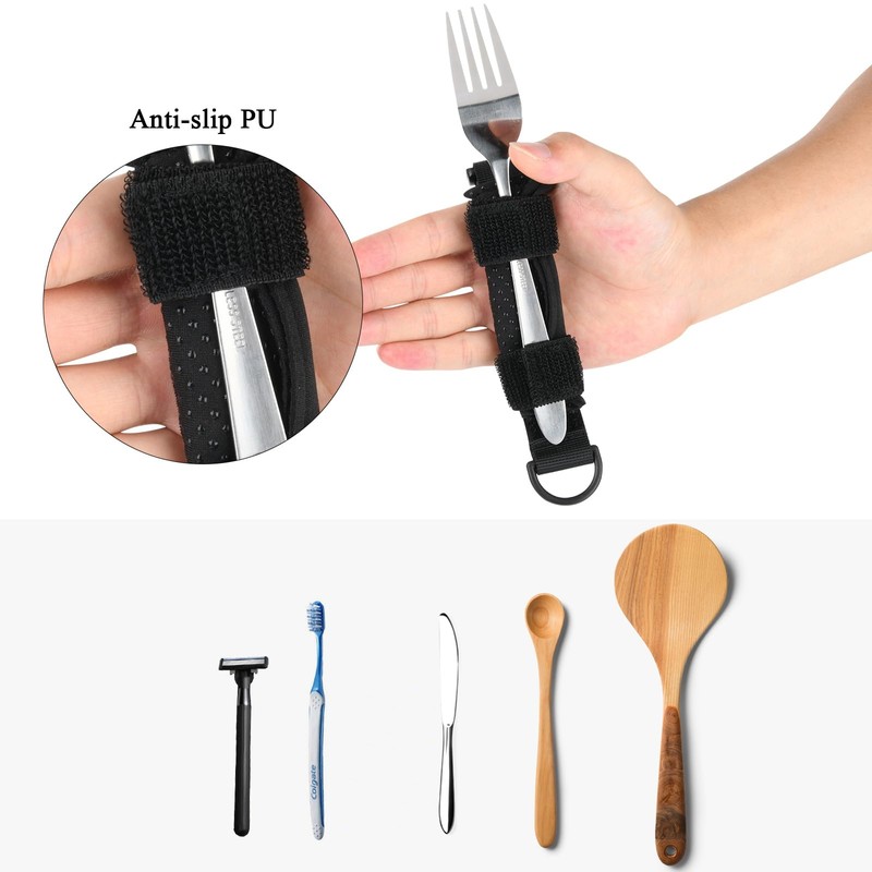 Beautyflier Spoon Fork Universal Cuff Utensil Adjustable Holder Strap for Holding Cutlery, Pens, Toothbrushes for Elderly or Individuals with Weak Grip (Black, Large Size)
