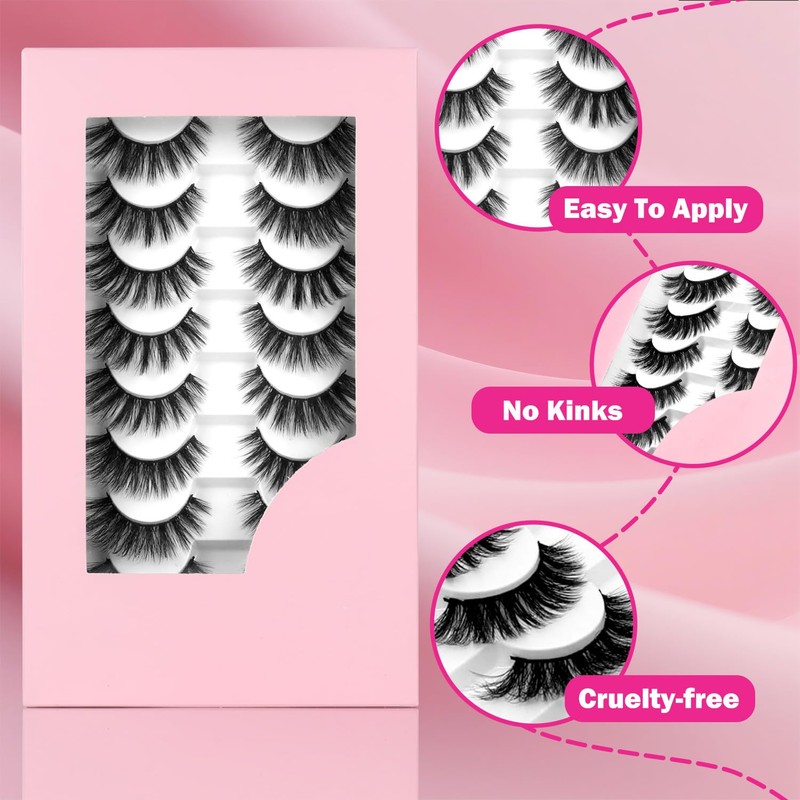 - BTLLSSH FALSE EYELASHES: BTLLSSH 3D natural false eyelashes are made of lightweight faux mink lashes. Contain 7 pairs eyelashes.