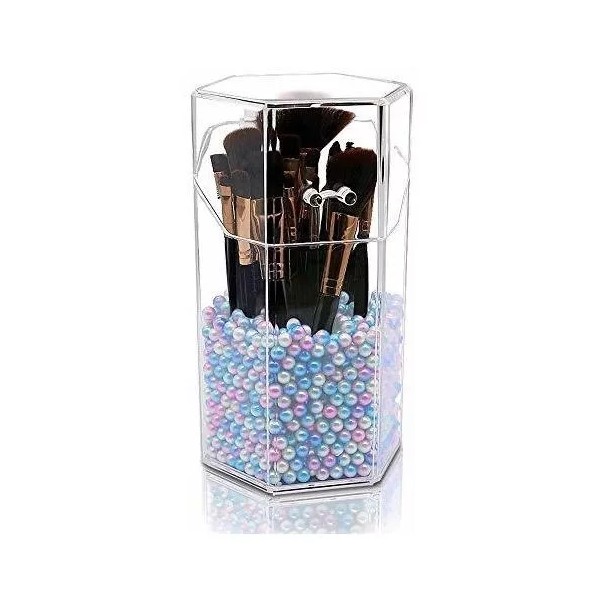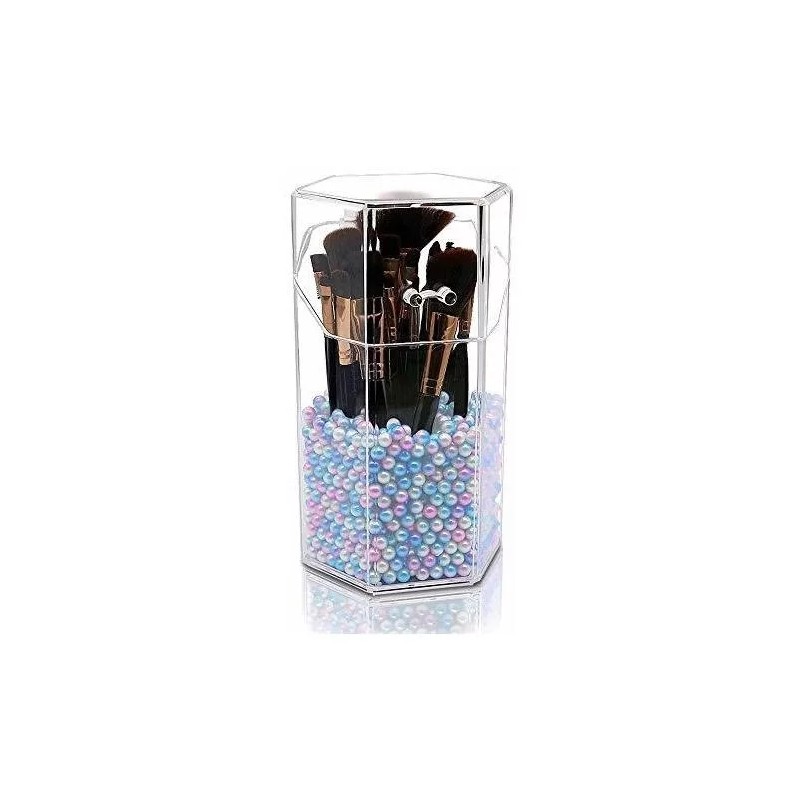 Beautypical Soporte De Brochas Hexagonal De Acrilico Con Tapa Y Perlas
