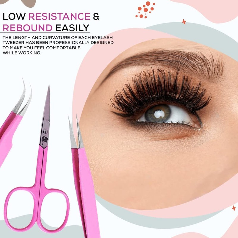 - Superior Quality - Eyelash Extension Tweezer Set is made with high quality stainless steel material which ensures that eyelash applicator tool should be good in grip and not bend out of shape which will make applicator tool durable. The tweezers are designed to ensure tips close perfectly every time, edges precise, sharp and have the exact amount of tension required.