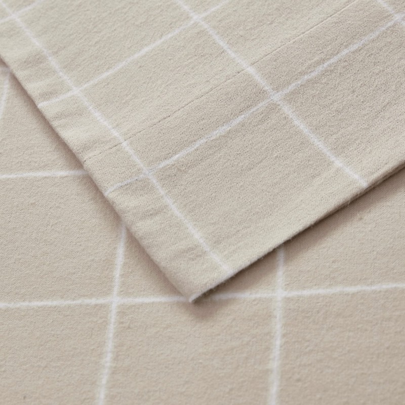 Beautyrest Oversized Cotton Flannel Bedding Sheet Set, Queen, Beige Windowpane 4 Piece