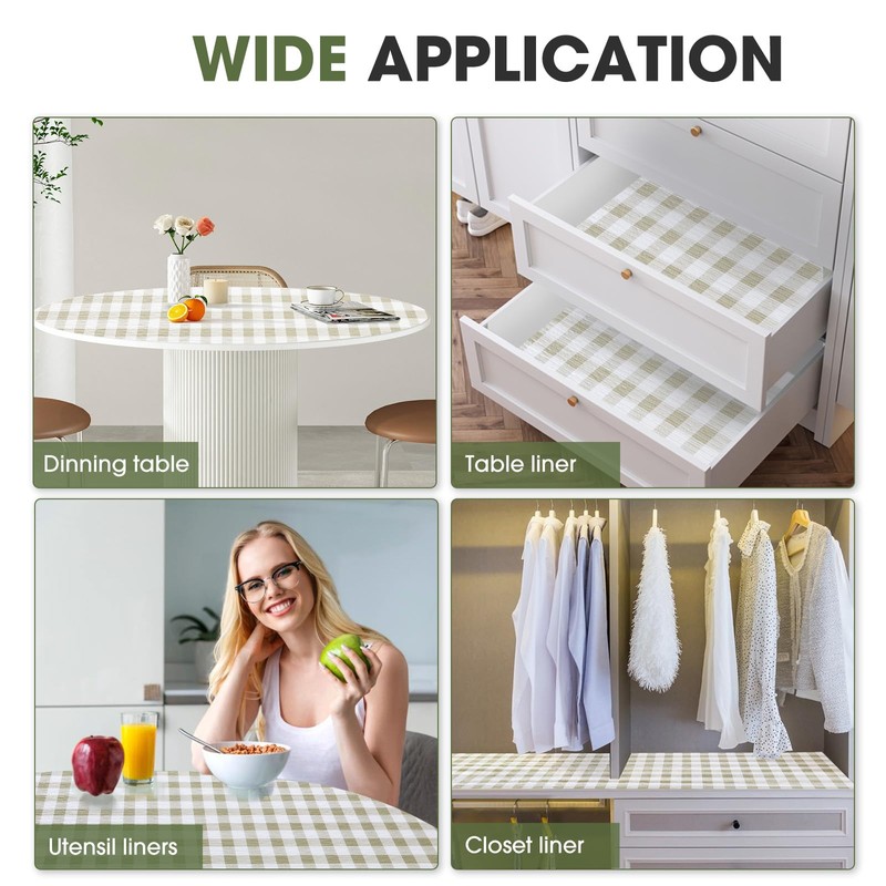 Add a bit of style and safety to your shelves and cabinets! These vinyl liners are colorful, stylish, and non-adhesive. Simply cut them to your desired size and place them on shelving to give it a non-slip surface and protect your most precious items. They're also stain-resistant and washable for ease of use. This liner features a classic plaid design that goes perfectly with any style of decor.Ideal for kitchens, bathrooms, and linen closets in homes, schools, churches, restaurants, and more. Make your home a safer, more comfortable place with Beautysaid vinyl shelf liners!