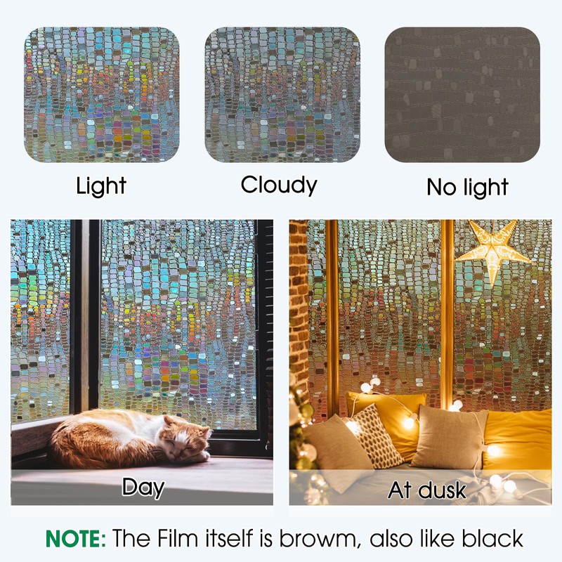 - Stained Glass Window Film:The textured crocodile pattern brings in a bit of luxury, class up your room.The window privacy film can create a rainbow effect by hitting with direct sunlight that bathes your room with a colorful yet subtle glow. The window film itself has no color