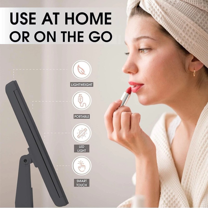 Beautyworks Backlit Vanity Makeup Mirror 36LED Lights Tri-Fold Portable 1X2X3X Magnification