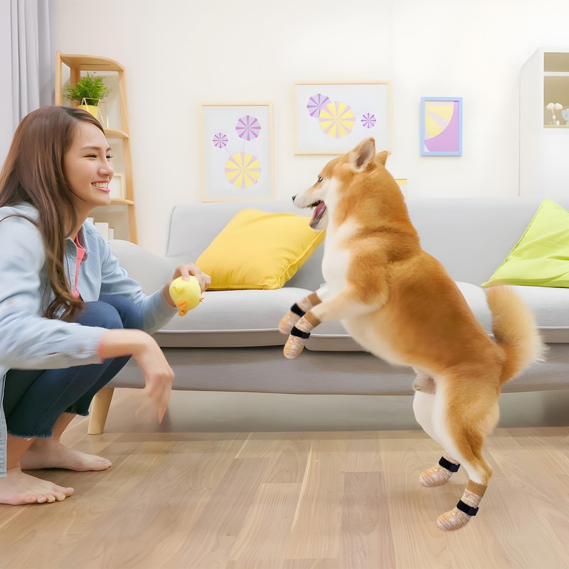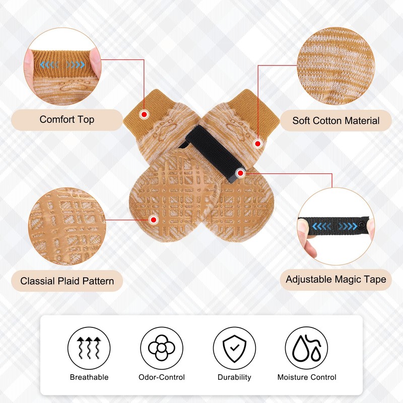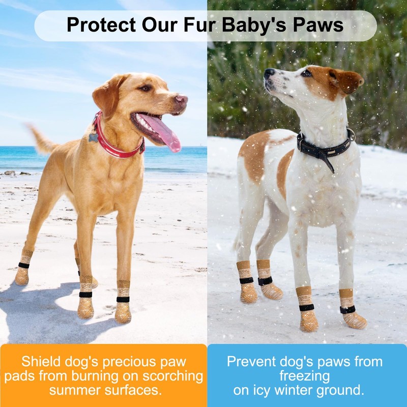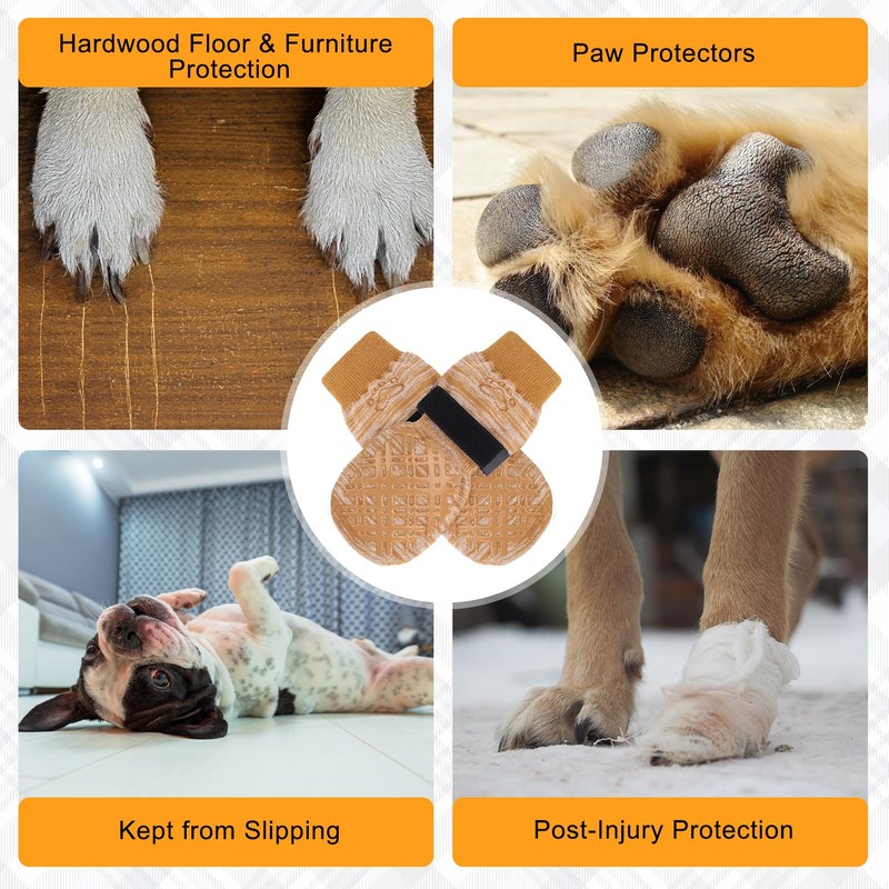 - Multi-Functional: Dog socks with grips are the perfect solution for slippery hardwood floors, hot pavement, floor protection, and dog paw licking prevention. In addition to giving better traction to your dog and keep the dog's feet warm and comfortable in winter, dog socks can protect your furniture such as hardwood floors, wooden tables, sofas, etc. from being scratched by your dog's sharp claws.