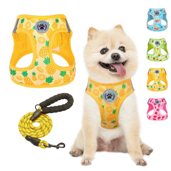 BEAUTYZOO Pineapple Pattern Dog Harness and Leash Set, Reflective, No-Pull, Small, Soft Padded Mesh Vest Harness for Small Dogs and Cats