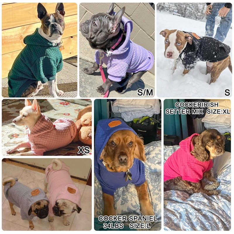 - DOG CLOTHES SIZE : These hooded sweatshirts fit perfectly on small, medium, and large dogs, available in black, grey, pink, rose, wine red, dark green 6 various colors, 7 sizes for you to choose from. Be sure to check carefully our size information. With the stylish sports dog hoodie, your lovely dog will be adorable at Halloween, Christmas, Thanksgiving, and Easter parties!