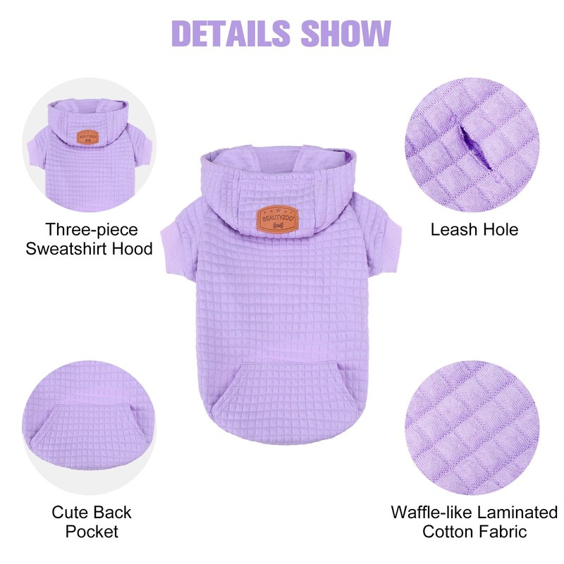 BEAUTYZOO Small Dog Hoodie Sweater with Pockets, Dog Clothes for Small Medium Dogs Boy Girl, Waffle-like Laminated Cotton Pet Coats with Hat and Leash Hole, All Weather Coat for Puppy Doggie Chihuahua