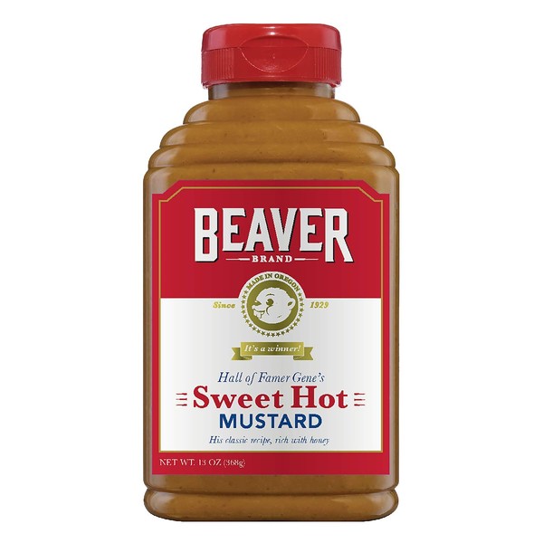 Seasoned with sweet honey and zesty spices, Beaver Brand Sweet Hot Mustard adds depth to any dish, from kielbasa to sandwiches to salad dressing. Created by an award-winning specialty condiment producer founded in 1929, this gourmet mustard provides an energizing mix of vegetarian-friendly ingredients. Beaver Brand gourmet mustards come in a wide range of delicious flavors, including deli, Dijon, honey mustard, jalapeno, spicy brown, sweet hot, even cranberry. The lightweight, squeezable bottle is user-friendly, perfect for picnics or poolside parties.