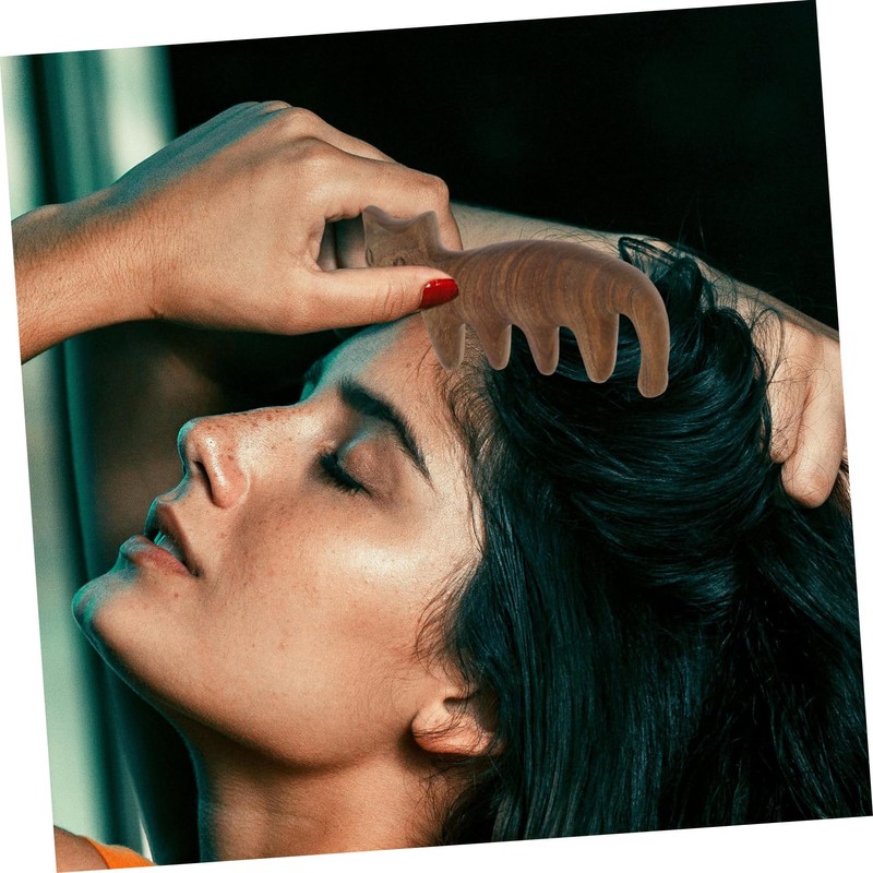 - Scraping tool: made of sandalwood material, and strong for long-term use, lovely appearance, thick comb teeth, can help relax during massage,scalp caring comb