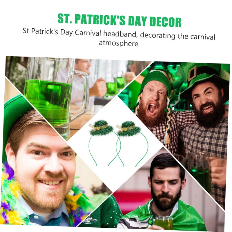Beavorty 2pcs Green Hat Headband Hair Decor Patricks Day Headband St Patty s Headbands Shamrock Party Favors St Patricks Day Headdress Patrick s Day Headdress Patrick Headpiece St. Plastic