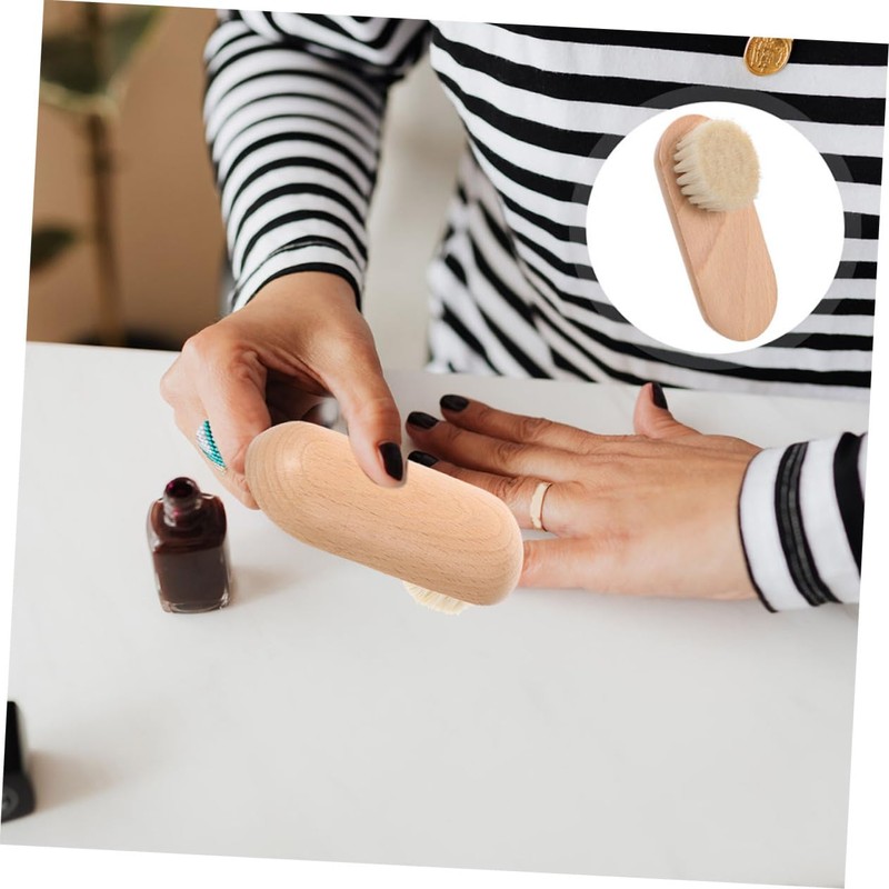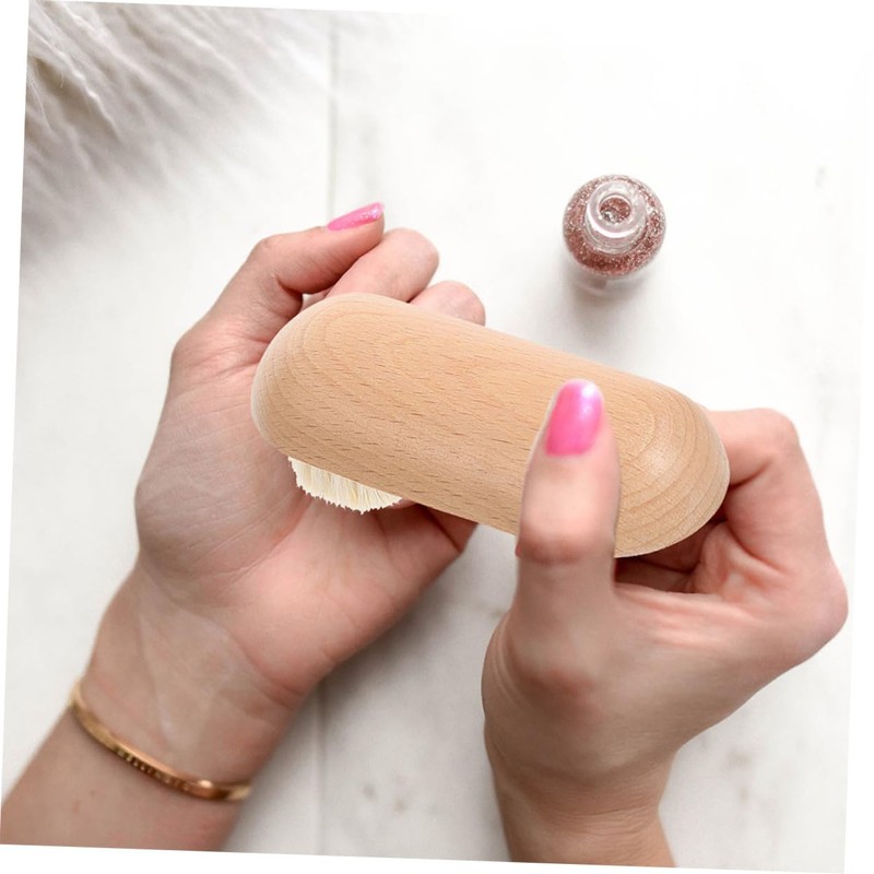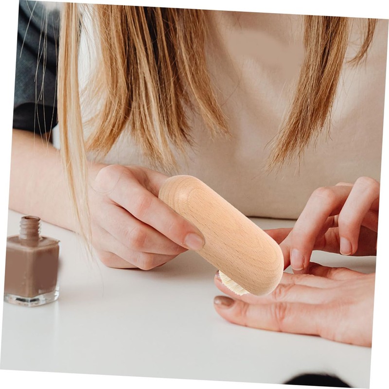 Beavorty 2pcs Half-Circle Nail Brushes Handle Wooden Fingernail and Toenail C...