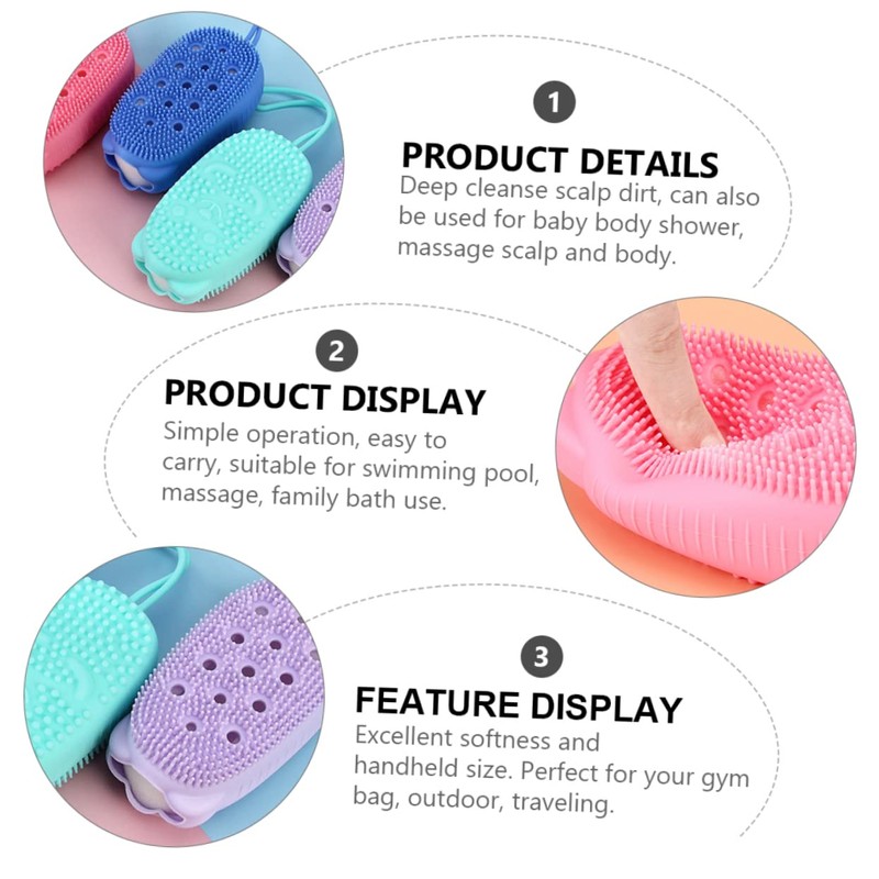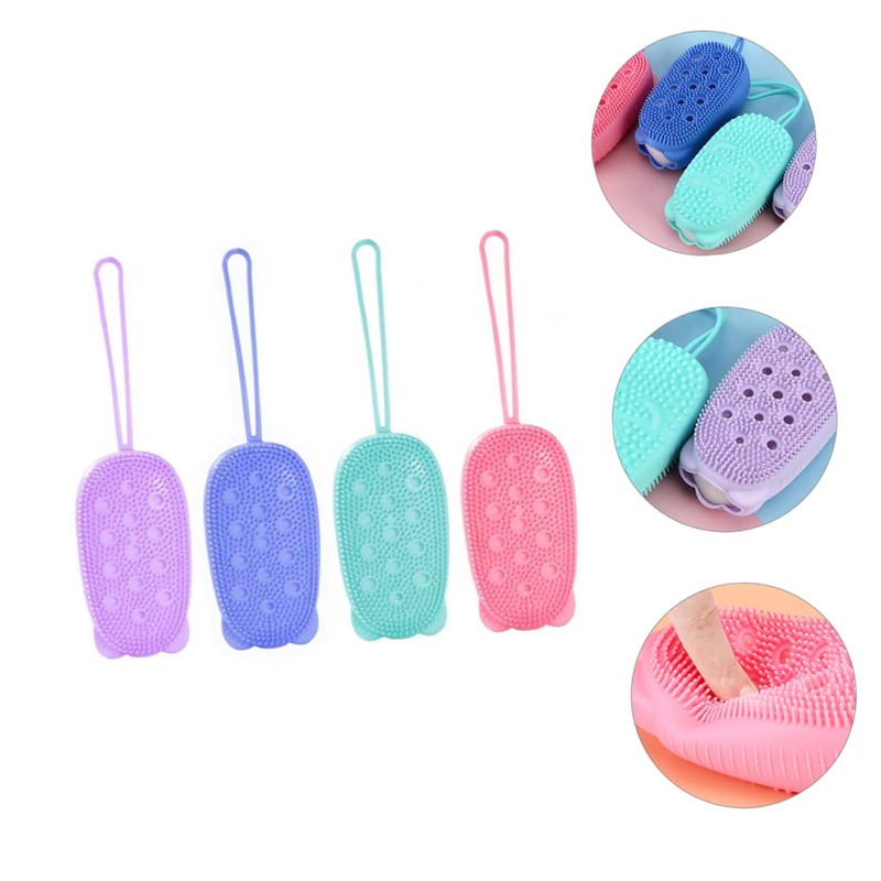 - Color: Pink, Purple, Blue and Green silicone body scrubber.