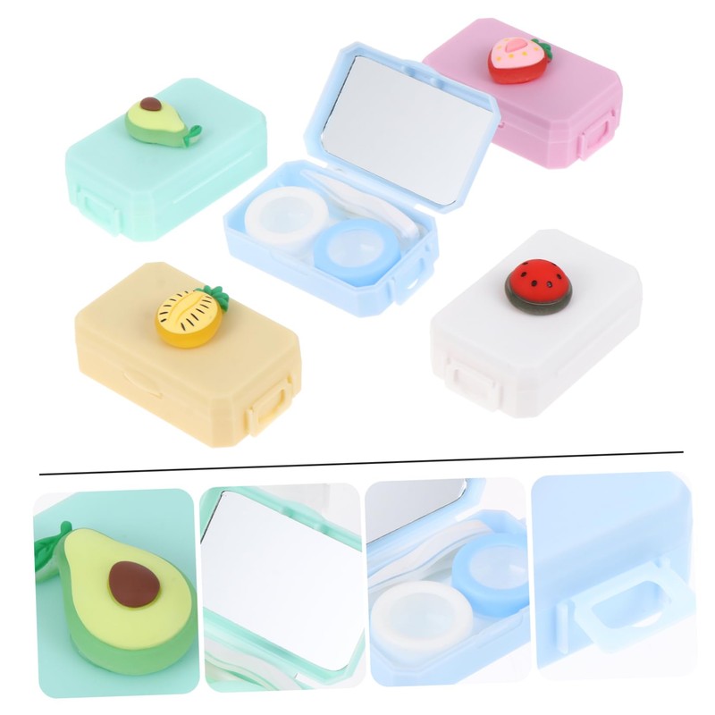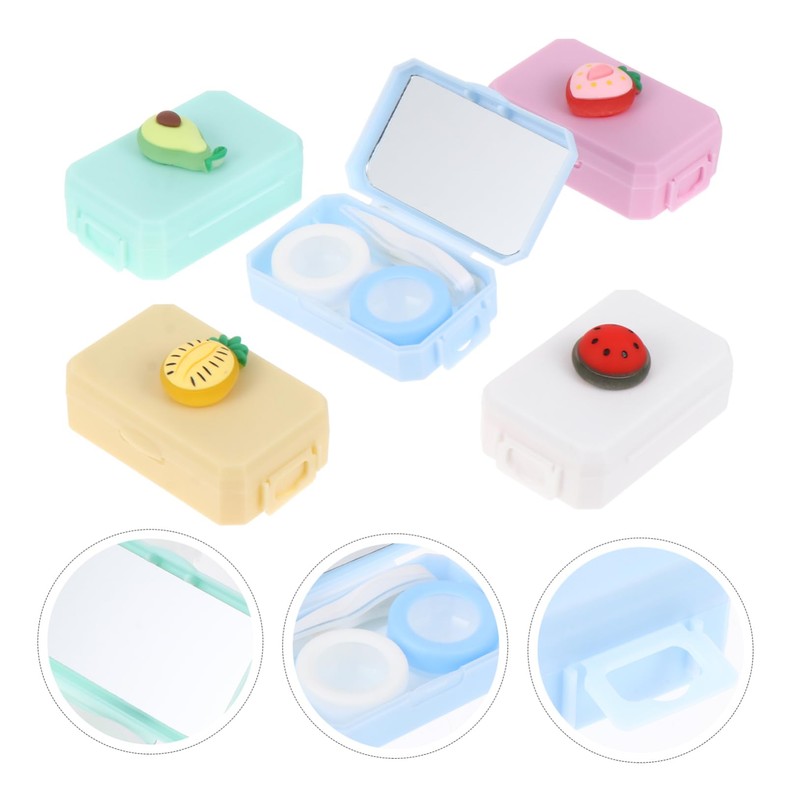 Beavorty 5pcs Unique Cartoon Design Lens Cases Plastic Storage Boxes for Lens Care Compact and Easy to Carry Random Style