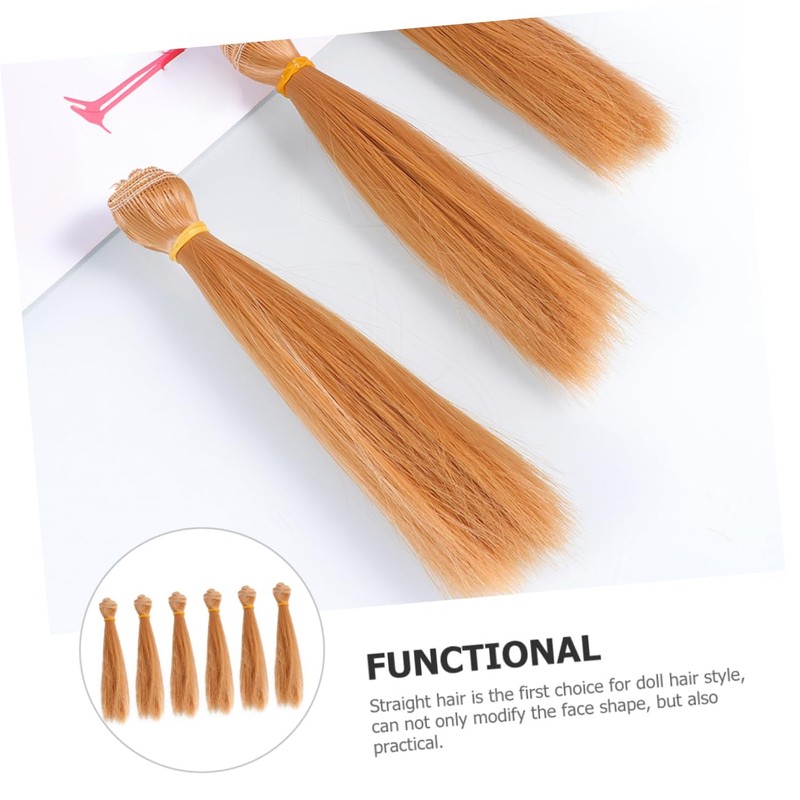 Beavorty 6pcs Doll Hair Extensions High Temperature Silk Straight Wigs DIY Craft Styling Kit Soft Synthetic Hair for Natural Look Dolls