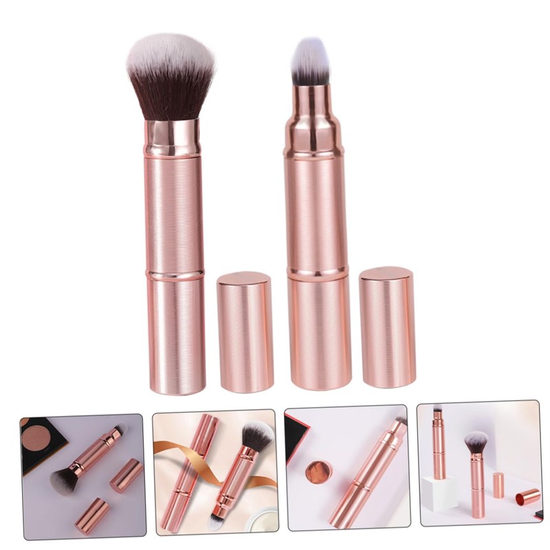 collapsible makeup brush Enhance your makeup application with this compact, dual-ended beauty brush.makeup brush with cap The retractable design allows for easy storage and portability, while the cap ensures longevity.double makeup Use the foundation brush to create a base and the blush brush to highlight your cheeks.eye makeup This multi-functional tool is for those who need a reliable and efficient makeup brush on the go