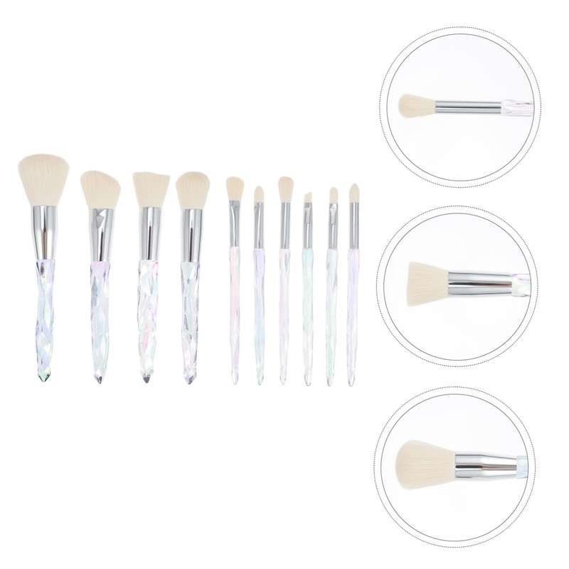 Beavorty Makeup Brush Set 10 Pcs Crystal Handle Set Lightweight Reusable Ideal for Travel
