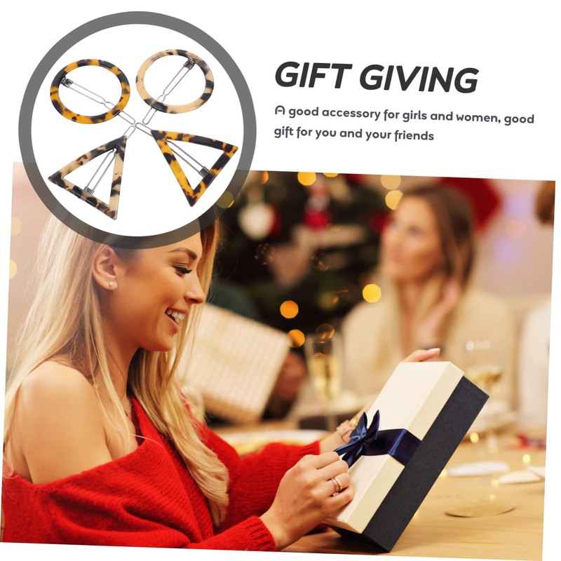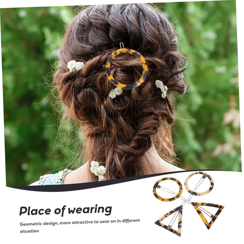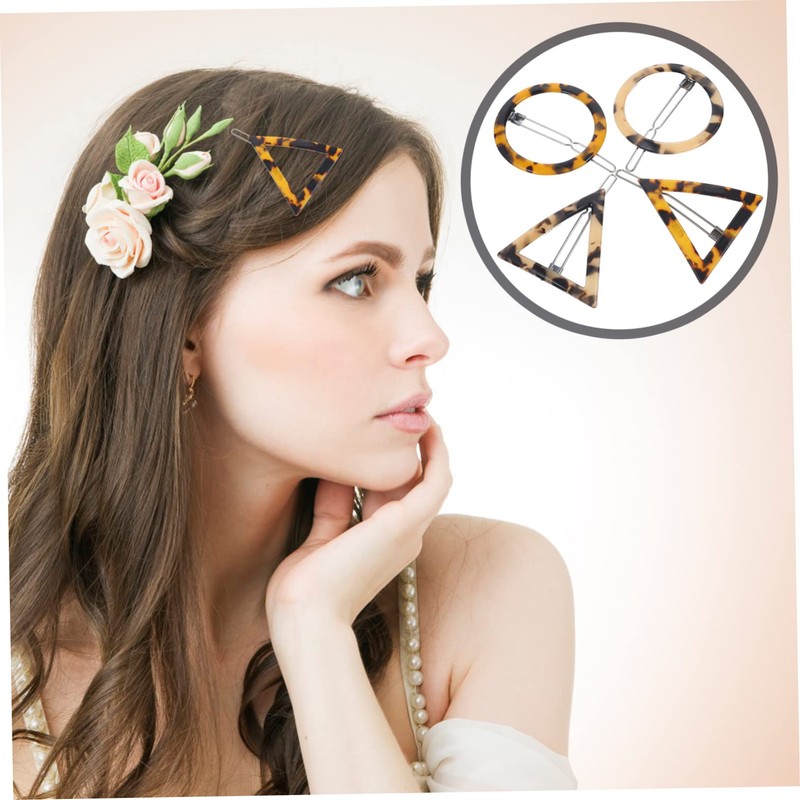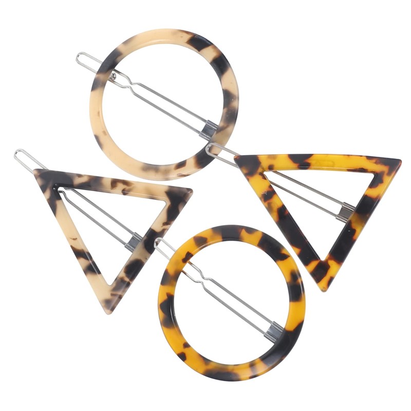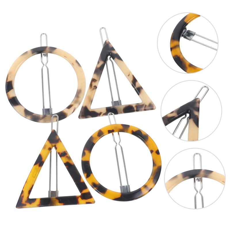 Beavorty Set of 4 Acrylic Hairpins Round Triangle Geometric Leopard Print Clip Barrettes for Styling