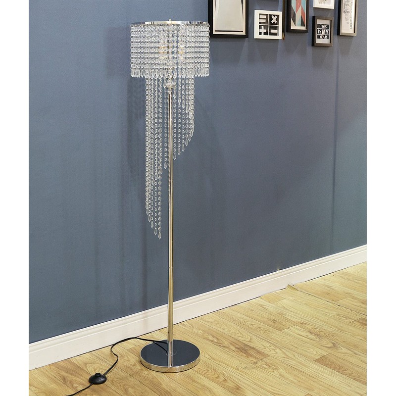 - This floor lamp is a modern style, the chrome hardware and crystal latticed shade perfectly filter in the room, available blend well with many decor styles, which need Illuminating a dimly lit corner, create a romantic atmosphere. They will look wonderful in the entryway of home, or living room or office whether the floor lamp turn on/off.