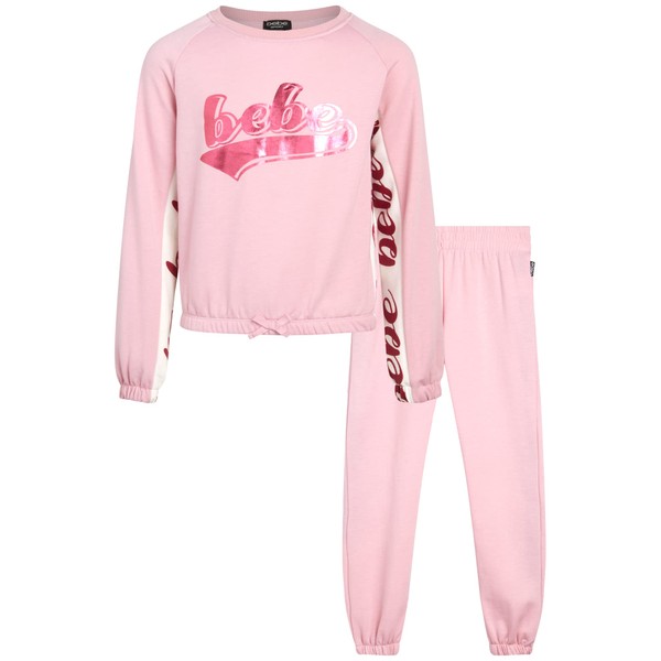 bebe Conjunto deportivo para ni as, 2 piezas, sudadera y pantalones deportivos de forro polar activo (ni a peque a/ni a grande), Bleach Mauve, 7-8
