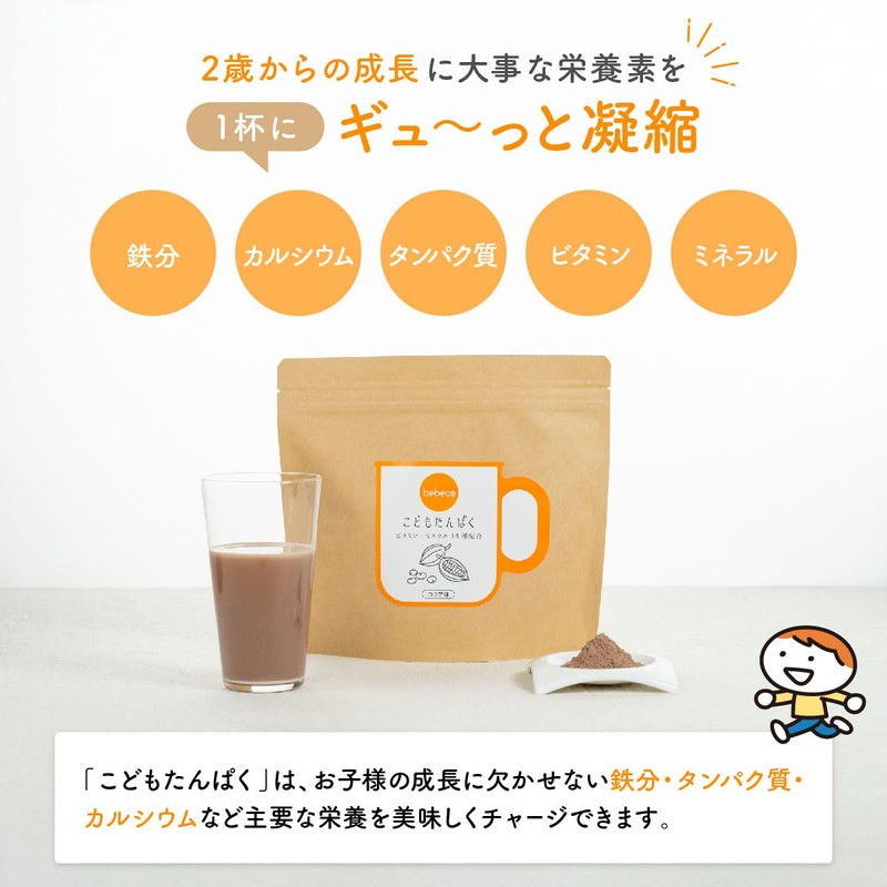 bebeco こどもたんぱく 200g 2歳から ジュニアプロテイン ココア味 鉄分 カルシウム 12種ビタミンミネラル配合 国内製造