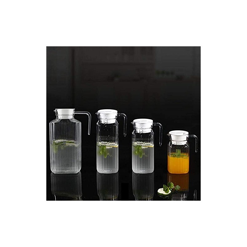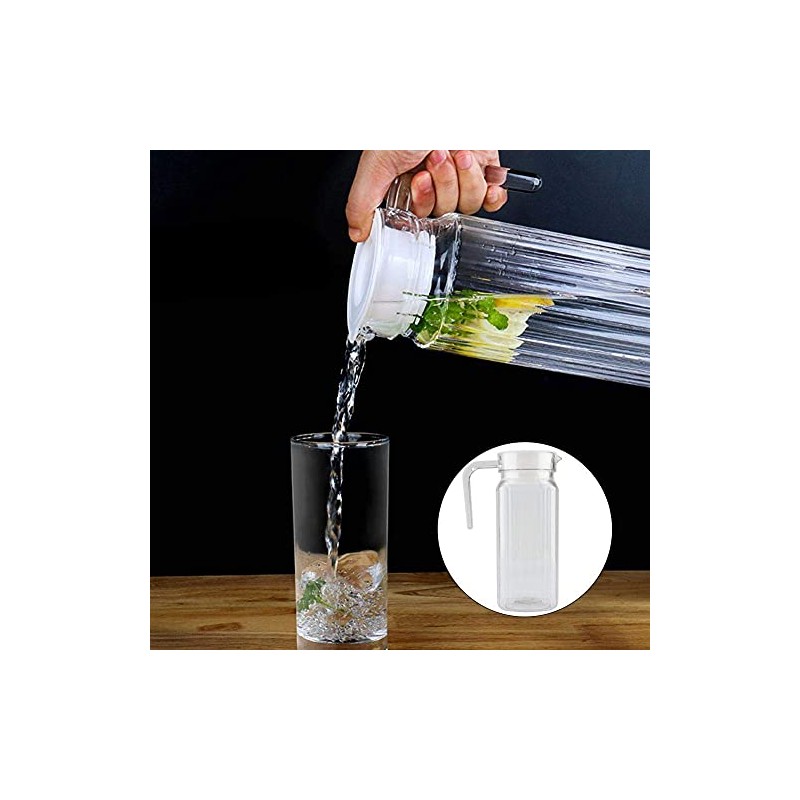 Hecho de material acrílico de alta calidad, no es fácil de Romper y duradero. Botella transparente con tapa, diseño conciso, forma elegante y apariencia hermosa. De gran capacidad, es suficiente para mantener la bebida y el jugo para varias personas. Puede usarse para contener jugos, agua fría, bebidas, té y leche de soja. El asa es fácil para que usted sostenga la botella y vierta las bebidas. Adecuado para el hogar, club, pub, bar, cafetería, uso del restaurante.