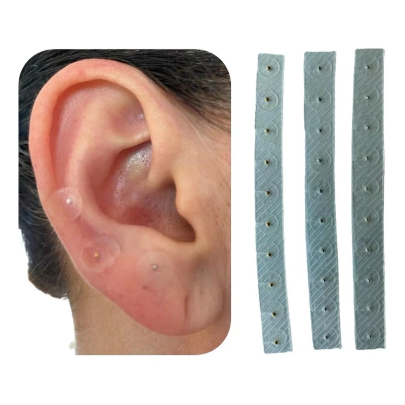 Incluye: 1000 balines magnetizados con parche adhesivo transparente (340 oro, 340 plata y 320 acero) para aplicar auriculoterapia.
