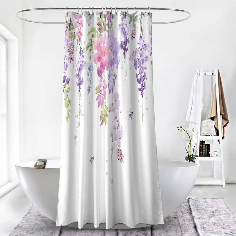 BECAN Floral Shower Curtain, Purple Wisteria Flower Polyester Fabric Waterproof Layer Thickening Shower Curtain 72X72Inches