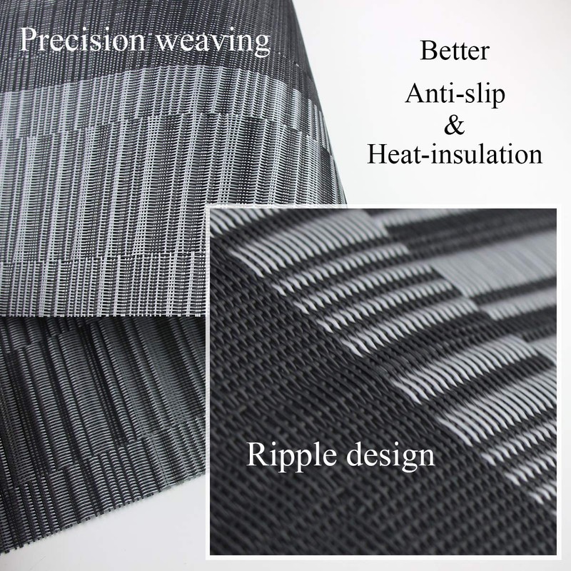 ❷Vinyl placemats is easy to clean.It haves more high quality feature,such as washable,heat-resistant and anti-skid.The PVC placemats is best choice to protect you table.