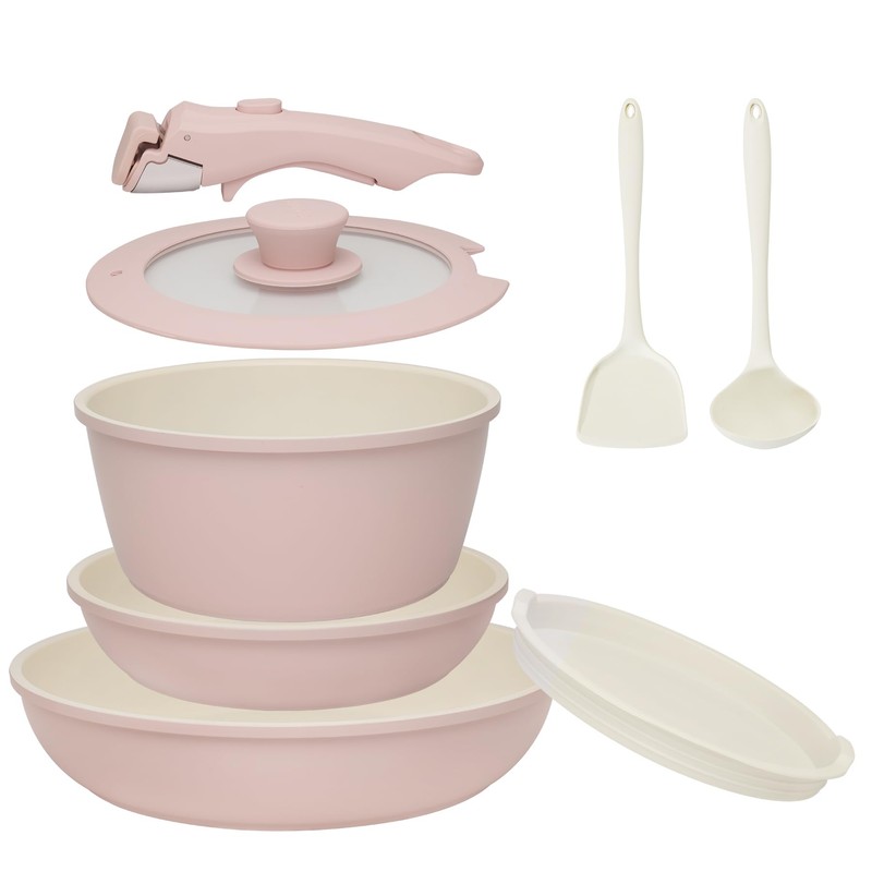 BECIGAR 8PCS Ceramic Cookware,Nonstick Pan, Removable Handle Ceramic Pots and Pans Set, Stackable Set, Nonstick Pan Pots and Pans Set Non Stick pot(Pink)